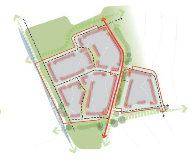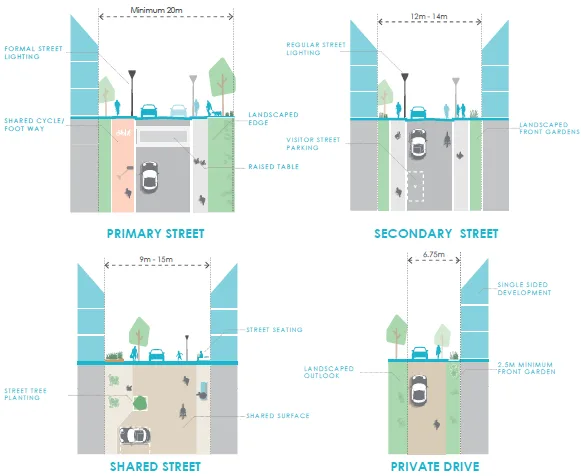 This Phase is part of the wider outline approval for 1,150 dwellings, 4a is situated within the Grumblepill Slopes character area and complies with a detailed Design Code, which encompass dedicated sections that set the parameters of the development.