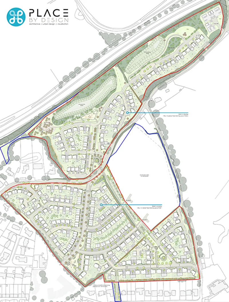 - A ‘Landscape Link’: a linear route running along the existing hedgerow adjacent to the affordable housing area.