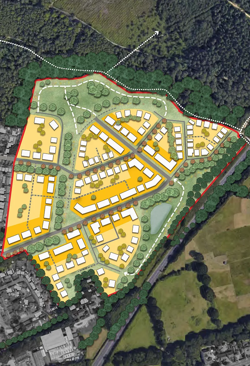 A residential extension to Colehill was explored as part of this capacity study. The design proposals include 419 new homes at a density of c.39 dph (net).