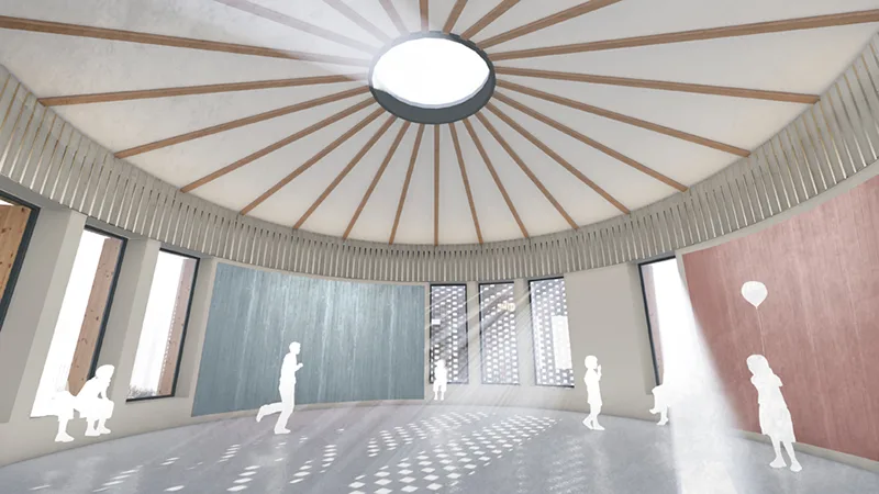 Winning Entry to the Building Trust International Competition 2015: Our proposal aims to help contribute in providing essential education facilities for 12,000 children of Khovd and for its future generations. An increasing population has caused the Tsast Altai school to become overcrowded and in need of expansion. Over the years the old school has also fallen into ilapidation, still without indoor toilets and the remaining of run down storage/warehouse facilities. The proposal is for a new extension to be built to provide much needed facilities for the 550 primary school children of Tsast Altai. The aim is help create a building which responds to the freezing climate, constraints of the site and the social and cultural context producing a well designed learning environment for 100 pupils.