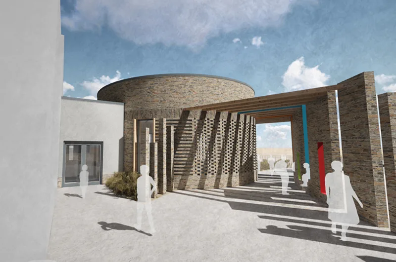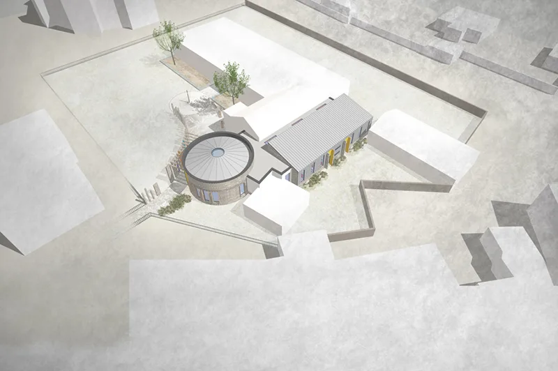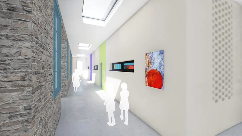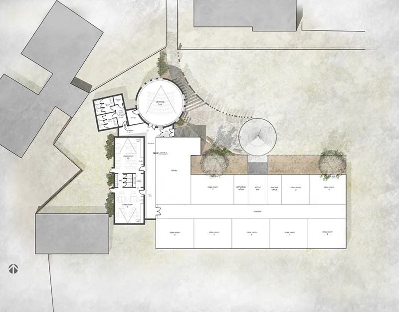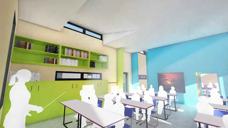 The new extension incorporates the functions of two new class rooms with three integrated toilets, a ‘learning hub ‘(multi-functional room), storage and renovating of the existing store to provide more indoor toilets for the whole school. The experience of learning begins upon arrival on the school site, by the pedestrian access the volume of the hub stands proud. The 78m2 hub provides a facility that the local community would own and be able to identify with, a ‘community learning hub’. The approach adjacent to the hub becomes a secondary entrance/exit that supports the main entrance which provides separate and immediate access to the ‘learning hub’. Through its architectural form it creates a sense of safety, enabling natural, passive upervision. In principle, the response to the brief is achieved through the way learning areas, entrance related areas and the circulation areas have been integrated. Incorporating the existing facilities into the scheme such as the library and the small external store/toilet creates a well integrated school with an improved learning environment.