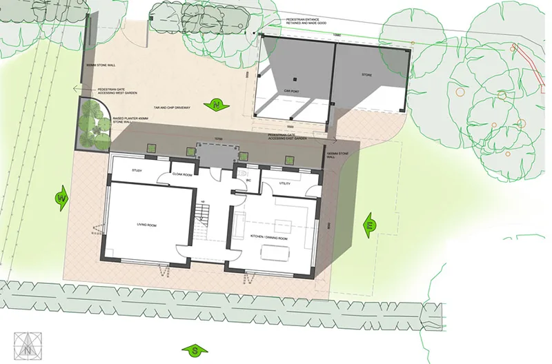 We undertook a process of refining the brief with the client which resulted in a clear design led strategy harnessing ideas such as simplicity, sustainable construction and locally sourced materials. It is felt that such a strategy would not only deliver a highly efficient home but also enable the building to seamlessly blend into the landscape.