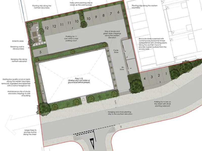 The design of this project focused on an efficient plan to deliver 12 key worker flats, with two 2-beds and two 1-beds on each floor. Prepared for Eagle One this delivers the required key worker housing to the wider Tithebarn Green development. Approved March 2020.