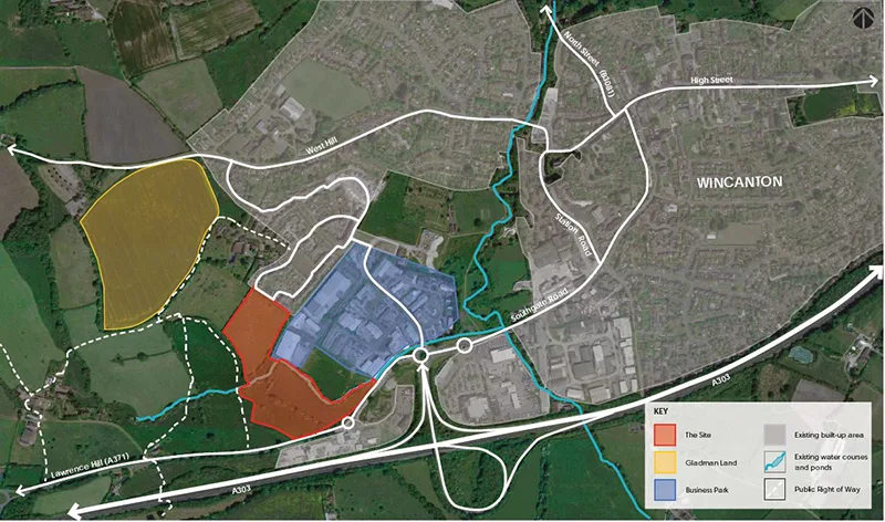 The Lawrence Hill development is located on the south-west edge of Wincanton, to the north of the A371 (Lawrence Hill Road).