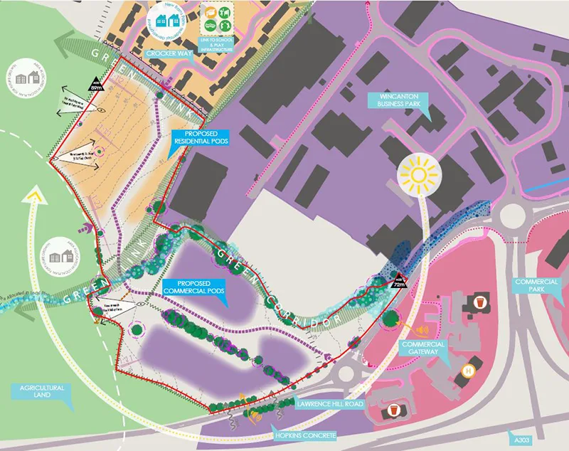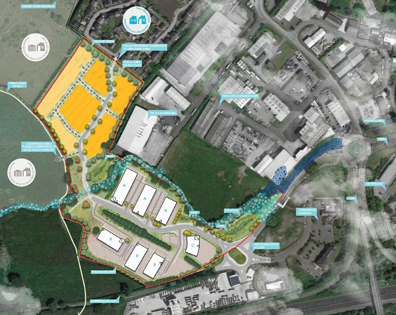 The proposed development will consist of 70 residential dwellings and up to 9,000 sqm of commercial units (use class B1, B2 and B8).
