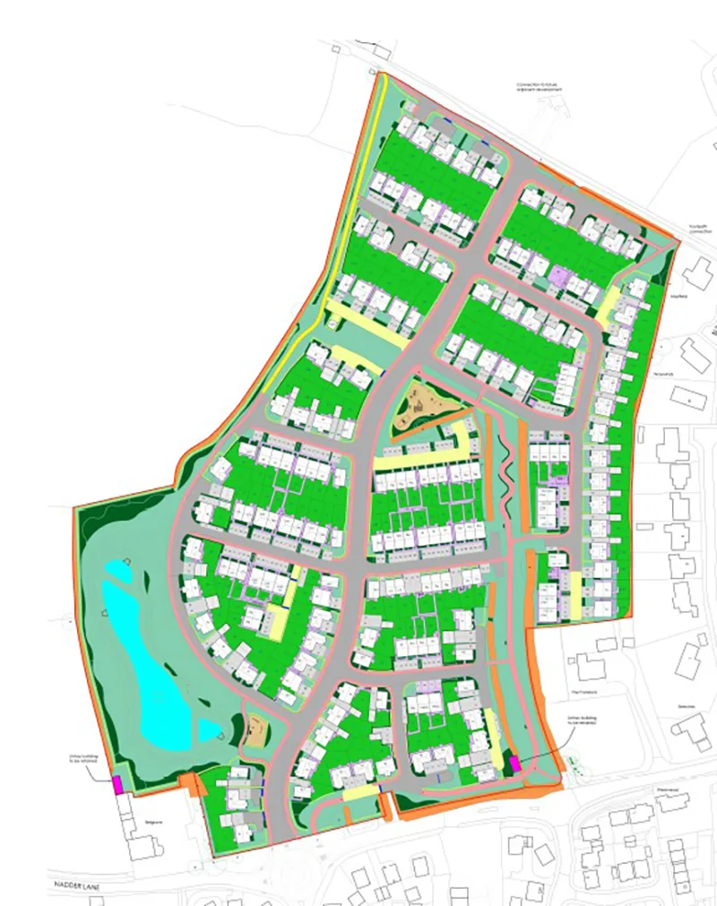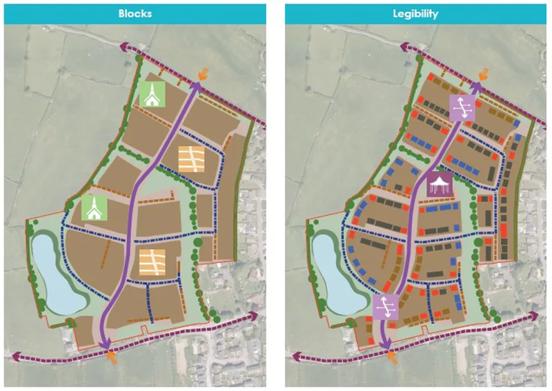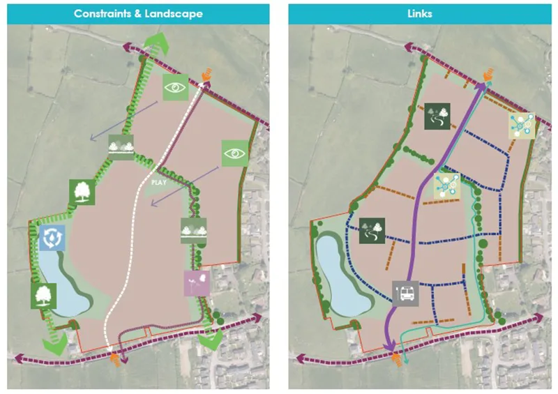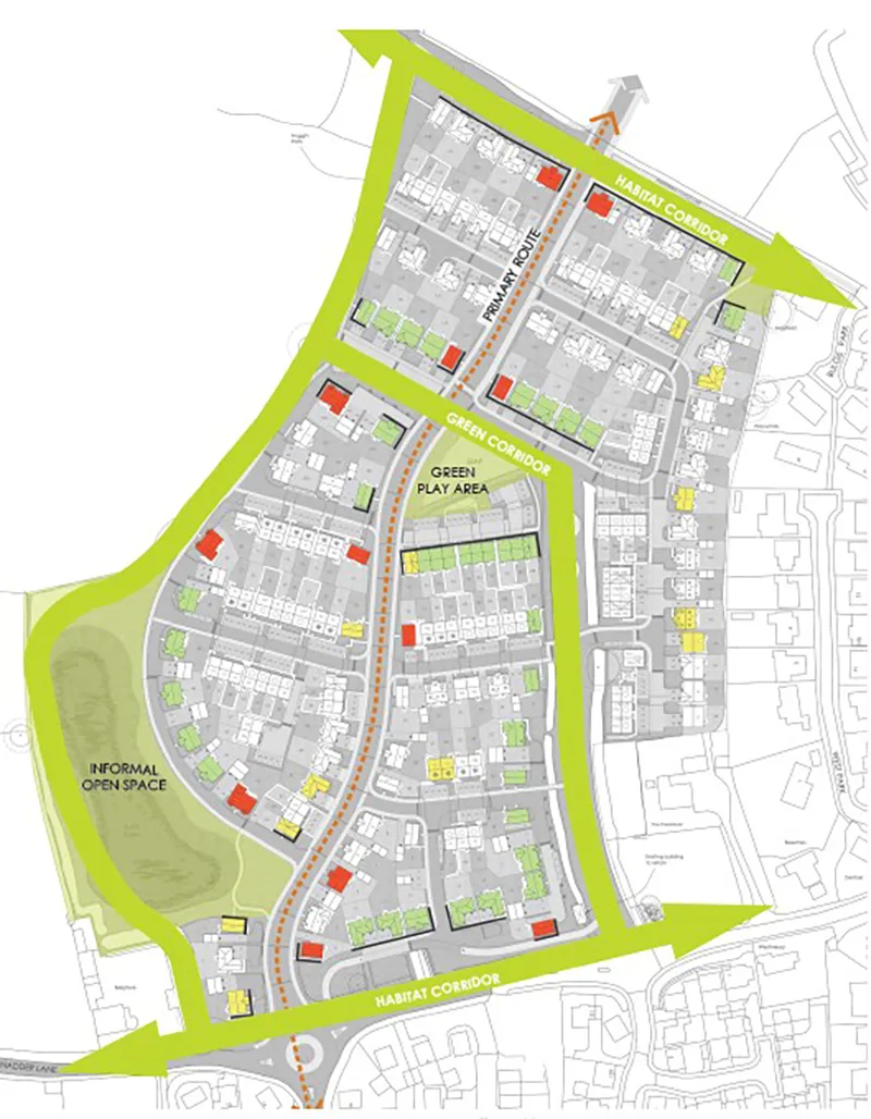 The linear greenspaces and SuDS basin combine with the existing hedgerows, to link with existing green infrastructure.
