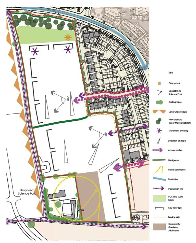 The constraints of the existing science park and approved residential developments next to the site, provided an opportunity to improve connectivity, enhance landscaping and provide improved POS.