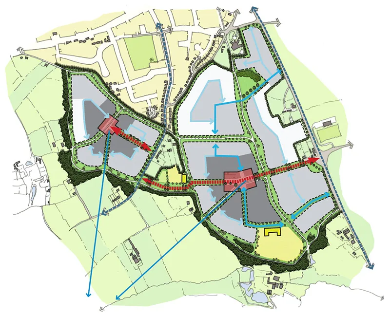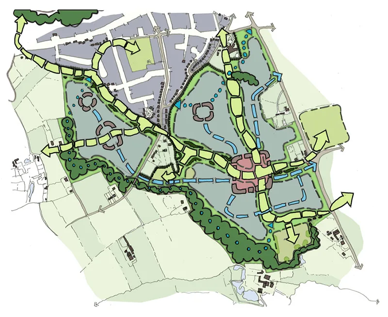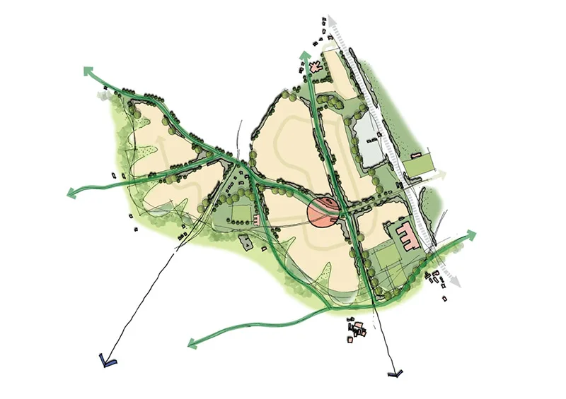 At a very early stage in the design process we were instructed to look at how the basic net areas of built form could inter-relate within the confines of the site’s extensive greenspace strategy.